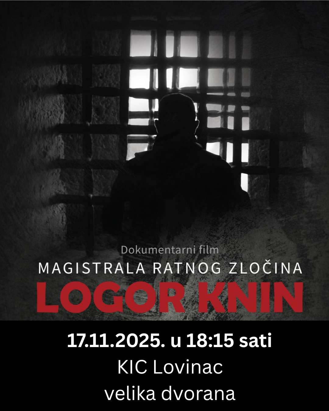 18:15 sati – Projekcija dokumentarnog filma „Logor Knin“ iz serijala „Magistrala ratnog zločina“ – Kulturno-informativni centar Lovinac (velika dvorana)